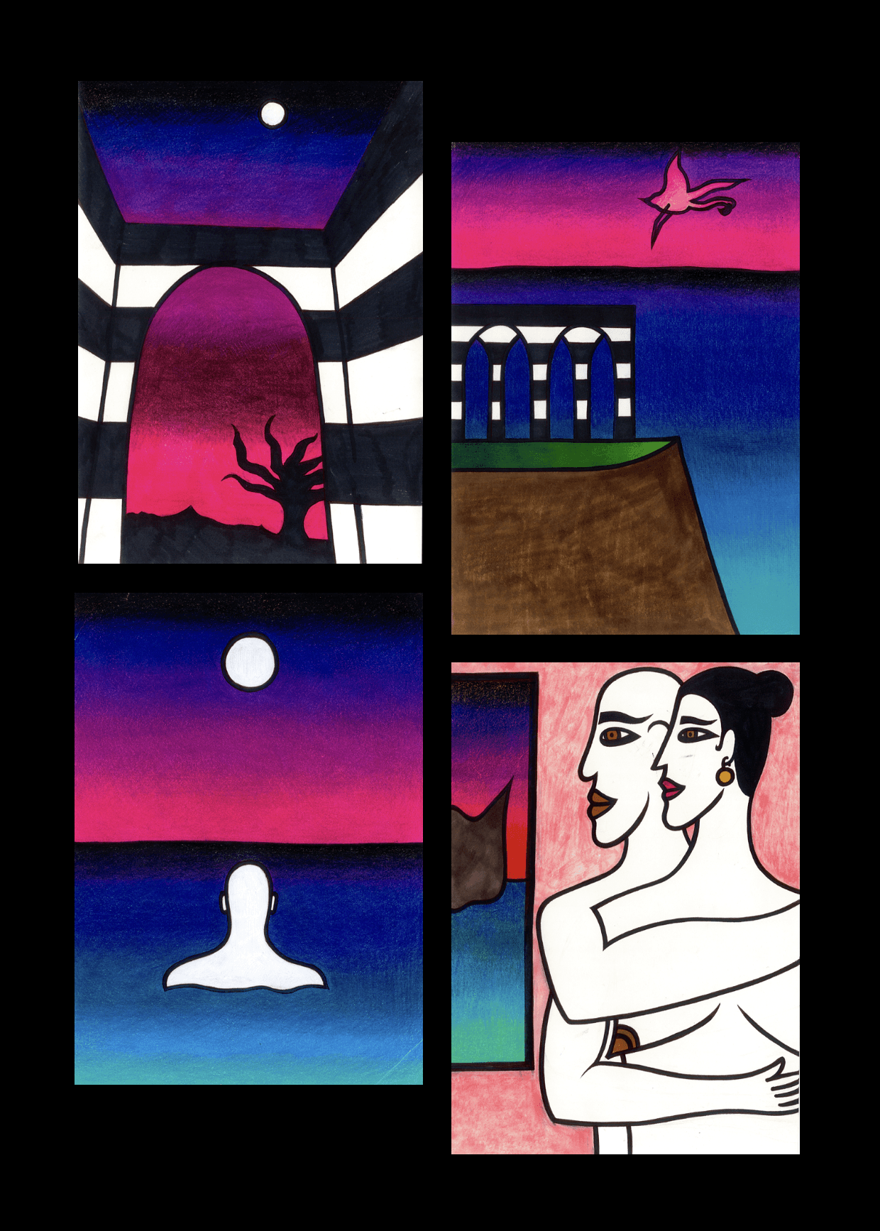 Nell'estate del 2022, un viaggio in macchina attraverso la Sardegna è diventato un libro di prose e poesie scritto di pugno. Ho realizzato una serie di illustrazioni per accompagnarlo, immagini essenziali e sincere di paesaggi, strade secondarie e piccole architetture che parlano di transito, attesa e appartenenza. Il tratto semplice e diretto cerca uno sguardo fanciullesco sulla realtà, capace di cogliere i dettagli che sfuggono, di restituire il viaggio come condizione esistenziale fatta di attese e silenzi. Stampato in formati A2, A3 e A4 e in un'edizione limitata numerata di cartoline, il progetto vive sia come opera grafica autonoma che come oggetto d'autore pensato per essere condiviso.